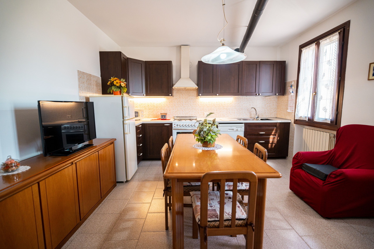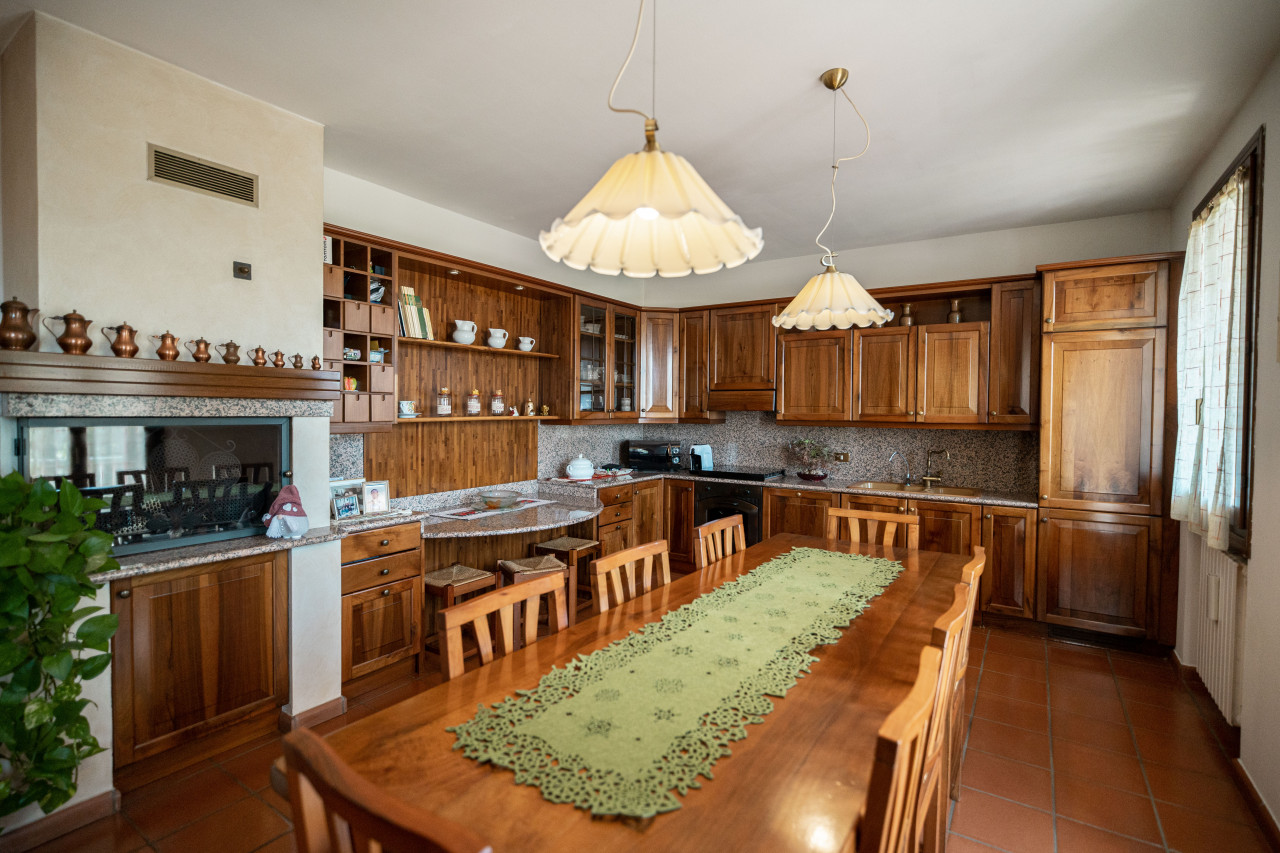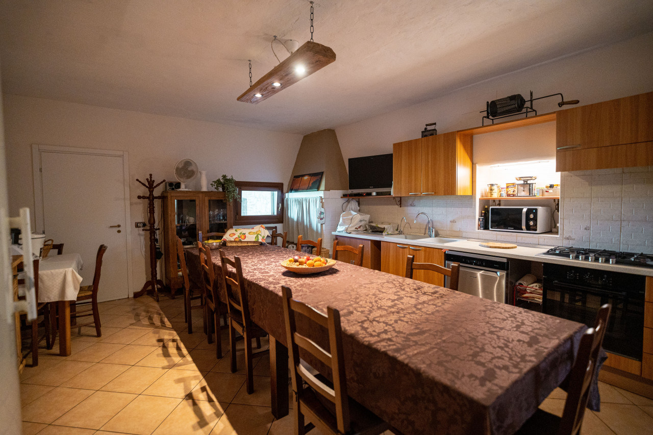 Varcando il grande cancello d’ingresso, sarete subito accolti dall’atmosfera calda e familiare che richiama le case di campagna di una volta. Al piano terra si trova il primo appartamento, risalente agli anni ’80, con una cucina e un soggiorno spaziosi, perfetti per riunire la famiglia attorno a un tavolo. Tre ampie camere da letto completano questo spazio, garantendo comfort e praticità.